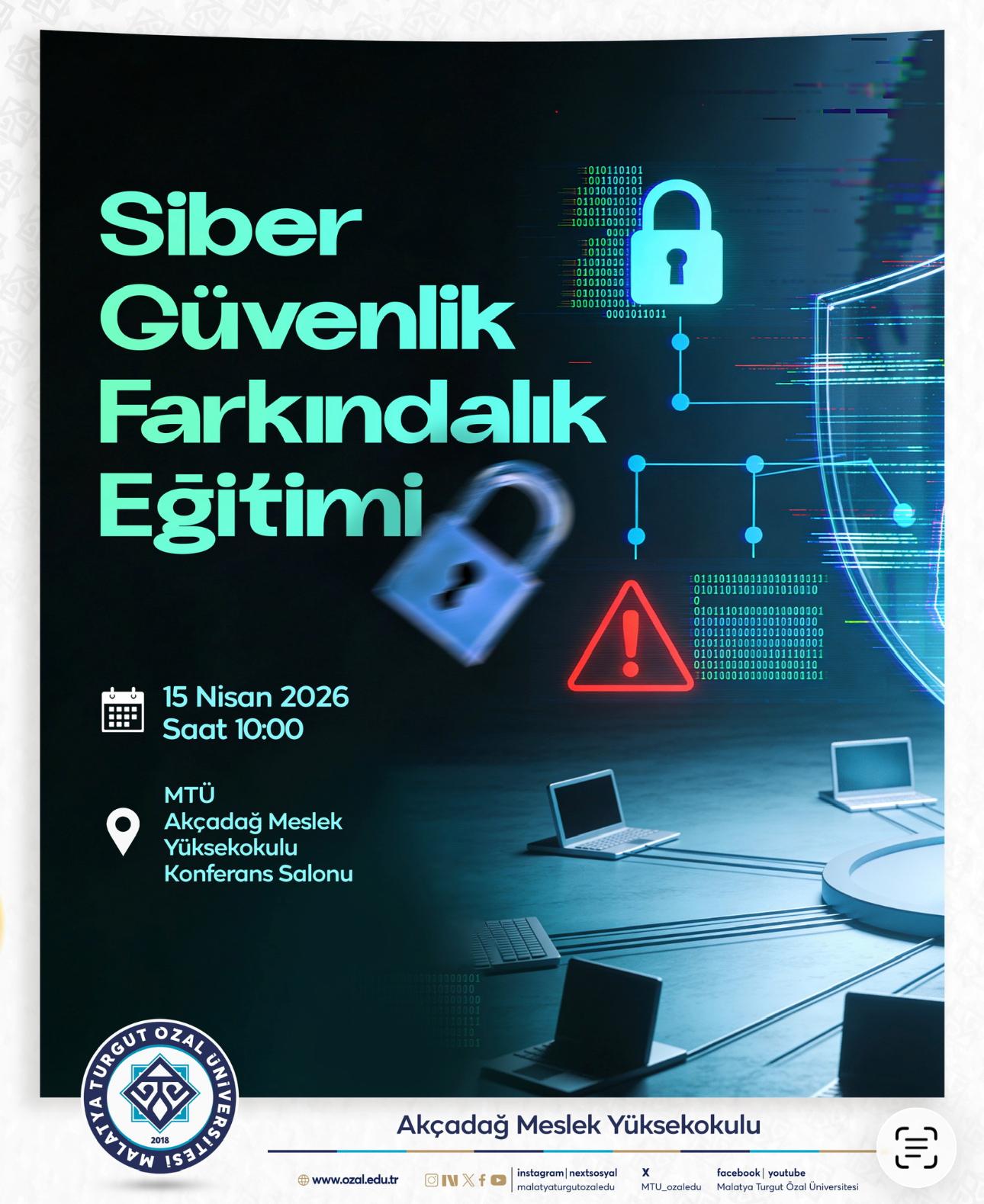 Akçadağ Meslek Yüksekokulu Bağımlılıkla Mücadele Birimi tarafından, öğrencilerimiz ve personelimize yönelik Siber Güvenlik Farkındalık Eğitimi düzenlenecektir.